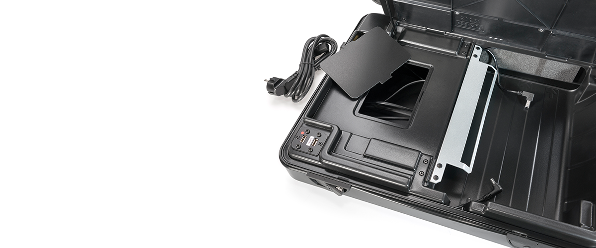 Der COMPRO.CASE ist ein für den geschäftlichen Service-Einsatz konzipierter Koffer zur Aufnahme eines Canon- oder HP-Mobildruckers sowie eines beliebigen Notebooks. Die Kofferverschalung ist dabei so konzipiert, dass sich Ihr Drucker komplett in diese integrieren lässt. Im Vergleich zu anderen tragbaren Lösungen kann nach dem Öffnen dieses Koffers sofort mit dem Arbeiten begonnen werden, ohne eine weitere Installation vornehmen zu müssen.Das außergewöhnliche Konzept ermöglicht die Anordnung der Geräte auf engstem Raum und ist somit überall dort die ideale Lösung, wo das Büro mobil sein muss.