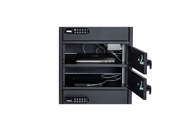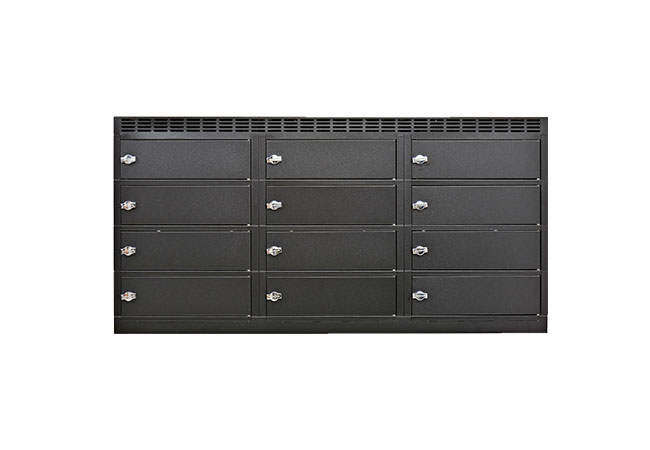 Die Notelocker 12 Schließfachanlage bietet mit je 12 Fächern Platz für die mobilen Endgeräte Ihrer Kunden bzw. Nutzer Ihrer Infrastruktur. Alle Fächer der Notelocker Anlagen verfügen über zwei Steckdosen. Je nach Bedarf gliedern sich die Notelocker Schließfachanlagen als kumulative Einheit ideal in Ihre Infrastruktur ein und eignen sich besonders für Bring-Your-Own-Device Konzepte.